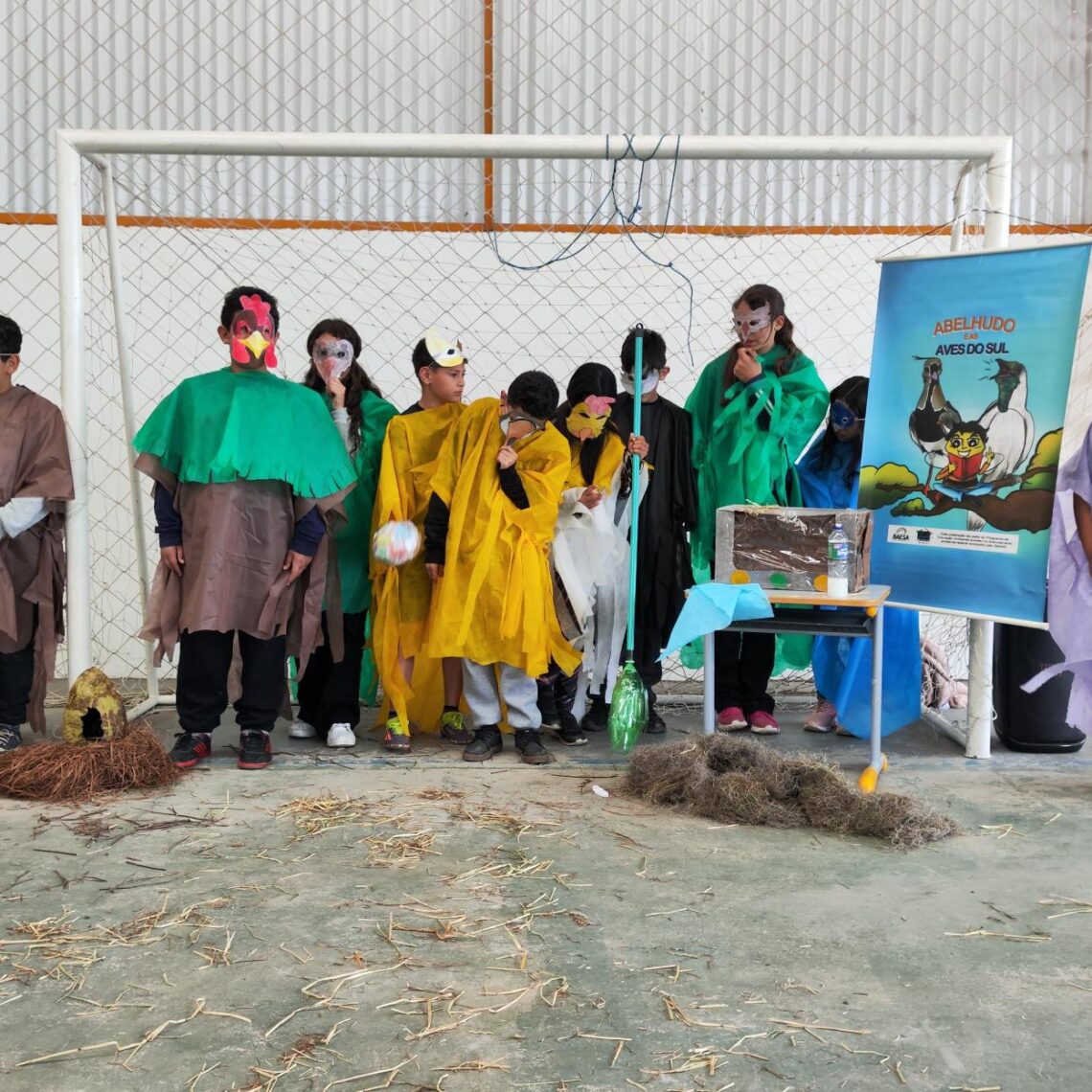 Encerrando o ciclo, os estudantes apresentam uma peça sobre o tema “aves”, reunindo criatividade, conhecimento e conscientização ambiental.